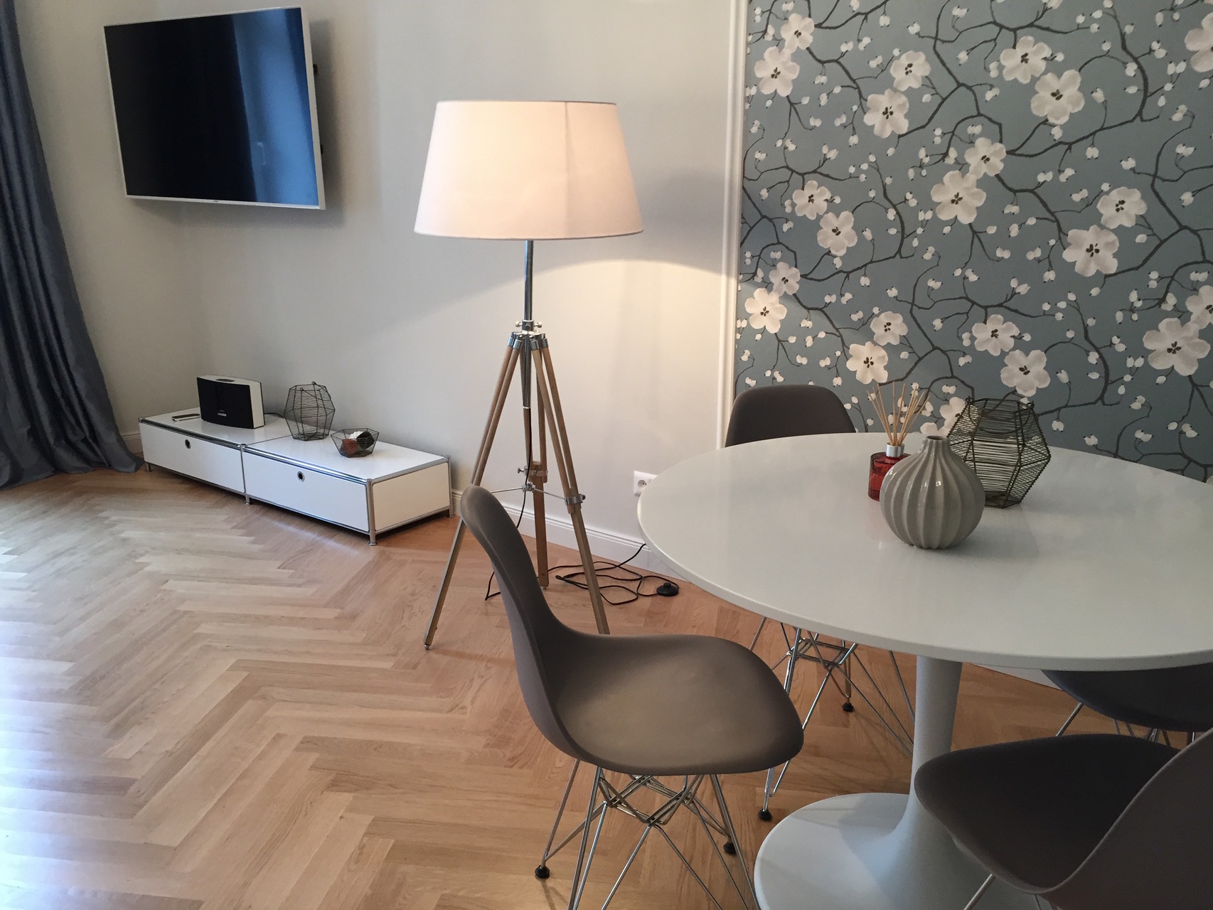 Pink Grapefruit City Condo is a 53 sqm (570 sqft) apartment in a classy and fully renovated Viennese style house from the late 19th century.