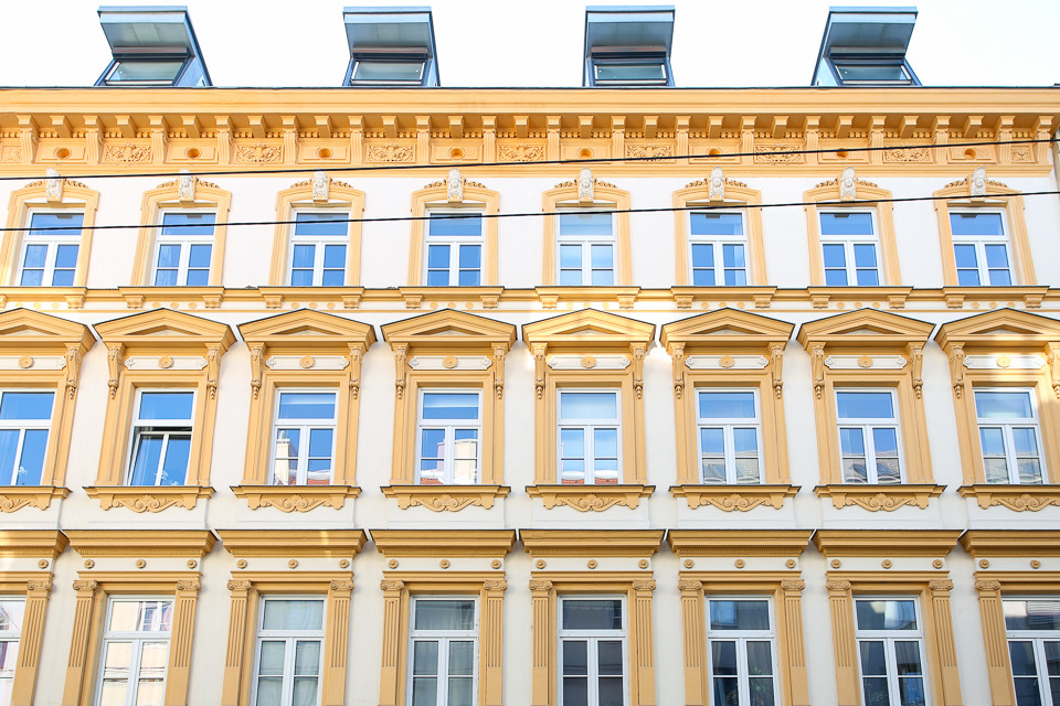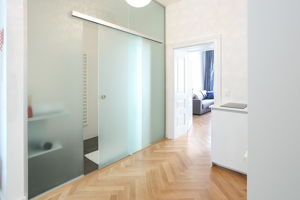 Das 53m2 große Apartment liegt im 2. Stock eines Wohnhauses im klassischen Wiener Altbau-Stil.